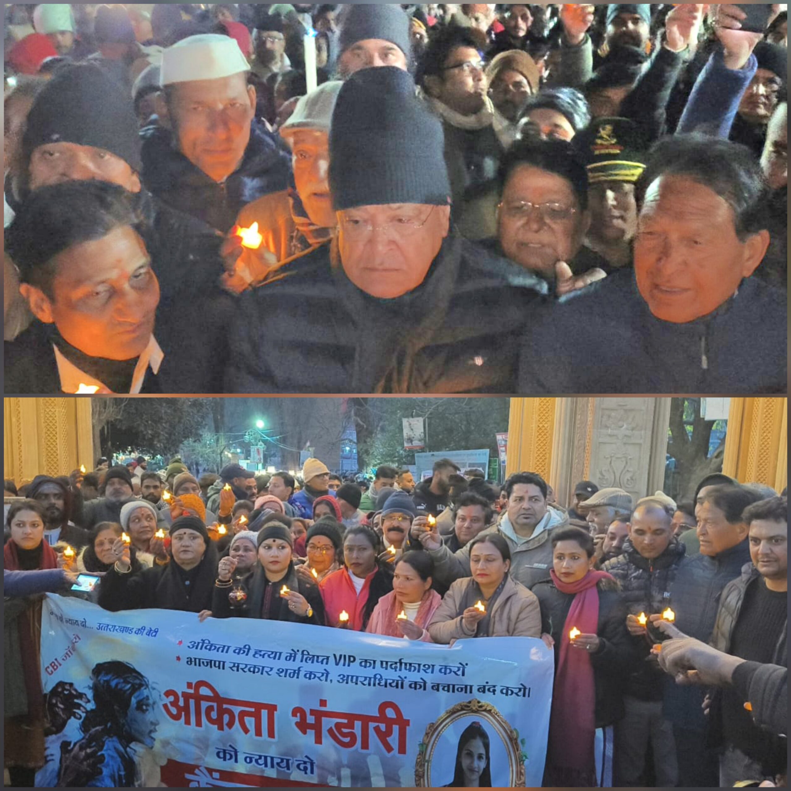 नैनीताल। उत्तराखंड की बेटी अंकिता भंडारी को पूर्ण न्याय दिलवाने व हत्याकांड प्रकरण की निष्पक्ष जांच उच्चतम न्यायालय कि निगरानी में करवाने की मांग को लेकर नेता प्रतिपक्ष यशपाल आर्य के नेतृत्व मे आज नैनीताल के पंत पार्क से तल्लीताल गांधी चौक तक कैंडल मार्च” किया गया।