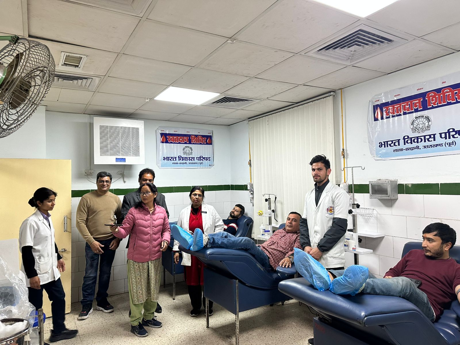 हल्द्वानी।भारत विकास परिषद की शाखा हल्द्वानी द्वारा आज सुशीला तिवारी राजकीय चिकित्सालय में रक्तदान एवं एनीमिया जांच शिविर का आयोजन किया गया। सामाजिक सरोकारों से जुड़े इस शिविर में 50 से अधिक लोगों ने उत्साहपूर्वक प्रतिभाग किया।