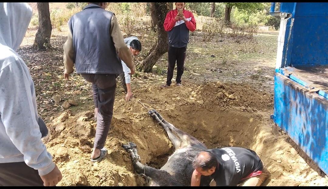 जानकारी के अनुसार नरसिंह नामक व्यक्ति ने अपनी गाय को नाई क्षेत्र के जंगल में छोड़ दिया, जिसके चलते वह पहाड़ी से गिरकर गंभीर रूप से घायल हो गई।