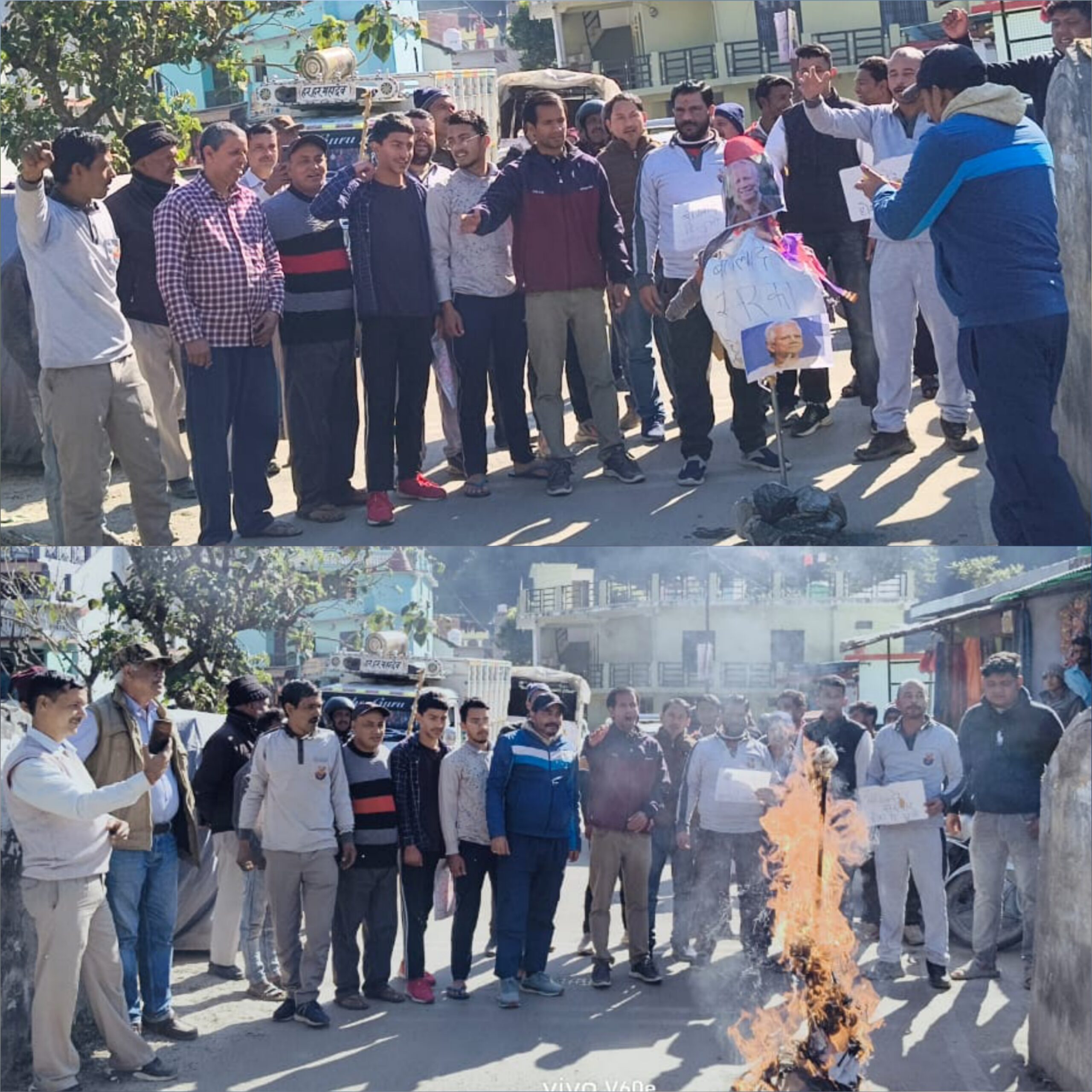 भीमताल। ओखलकांडा ब्लॉक के खनस्यूं में कई हिंदू संगठनों जिसमें बजरंग दल, विश्व हिंदू परिषद, हिन्दू वाहिनी, भारतीय जनता युवा मोर्चा आदि के पदाधिकारियों व स्थानीय लोगों ने बांग्लादेश में हो रहे हिंदुओं के उत्पीड़न व नरसंहार पर वहां के युनूस सरकार का पूतला दहन कर बांग्लादेश सरकार का विरोध दर्ज किया।