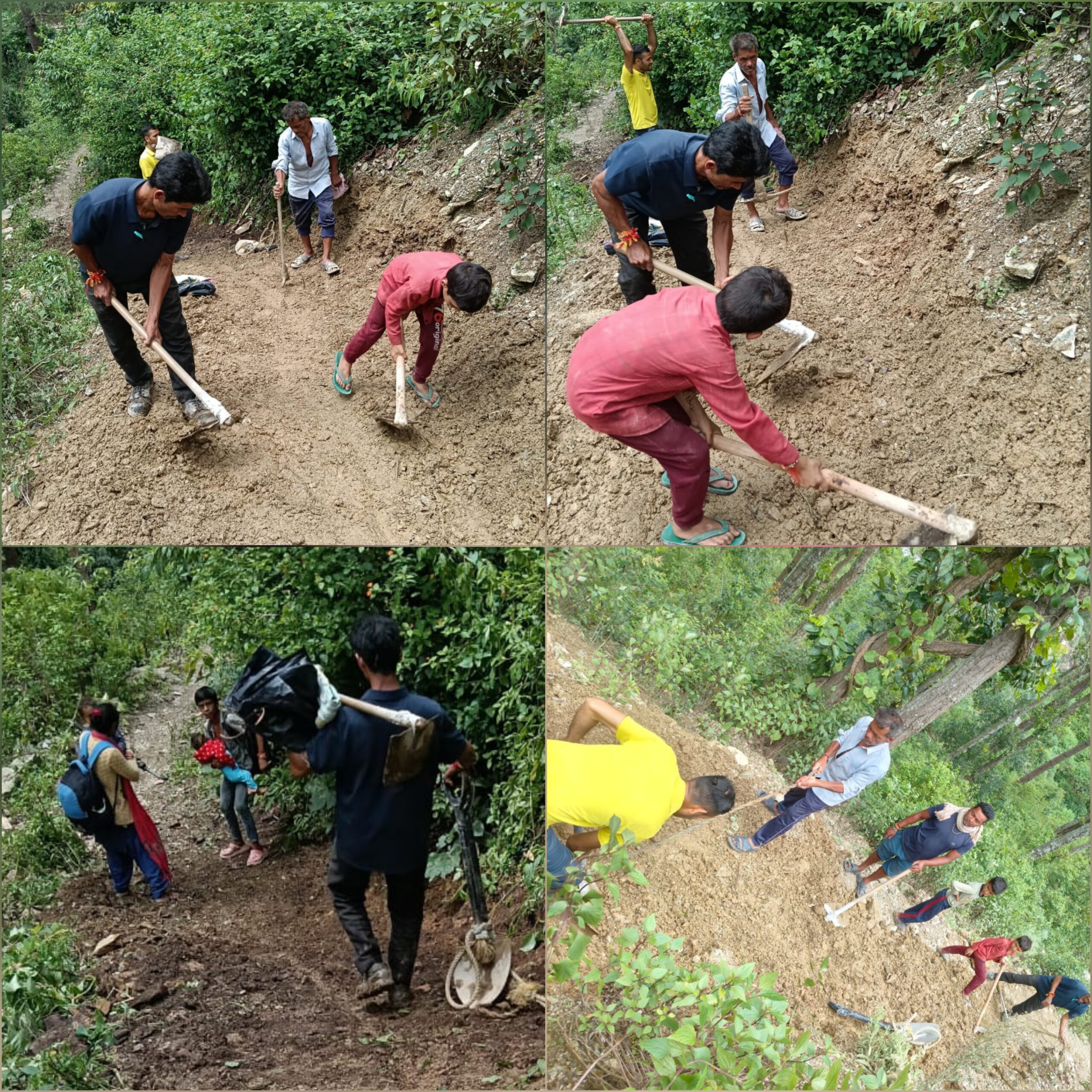 आज रीखाकोट गांव के ग्रामीणों ने बाइक के निकलने व स्वयं पैदल चलने के लिए रास्ता तैयार किया जिससे कि वह मंडी सब्जियों को भेज सके ।