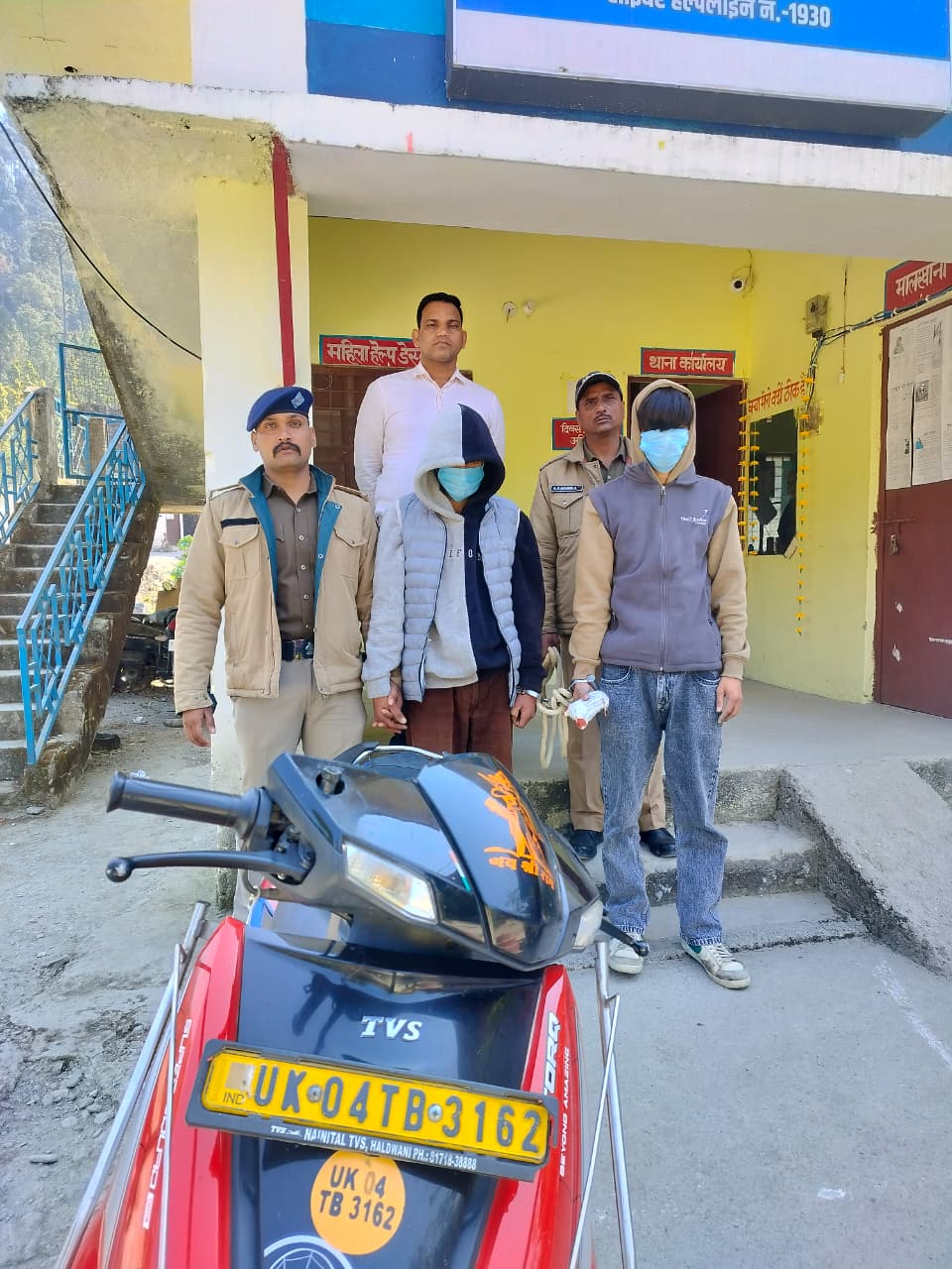 थानाध्यक्ष खनस्यूँ विजय पाल सिंह के नेतृत्व में चलाए गए सघन चेकिंग अभियान के दौरान सिमलिया बैण्ड से लगभग एक किमी नीचे खनस्यूँ-हल्द्वानी मार्ग पर लाल-काले रंग की स्कूटी (UK04TB-3162, टीवीएस एन्टॉर्क) सवार दो युवकों को रोकने का प्रयास किया गया। पुलिस टीम को देखकर दोनों भागने लगे, लेकिन घेराबंदी कर उन्हें पकड़ लिया गया।