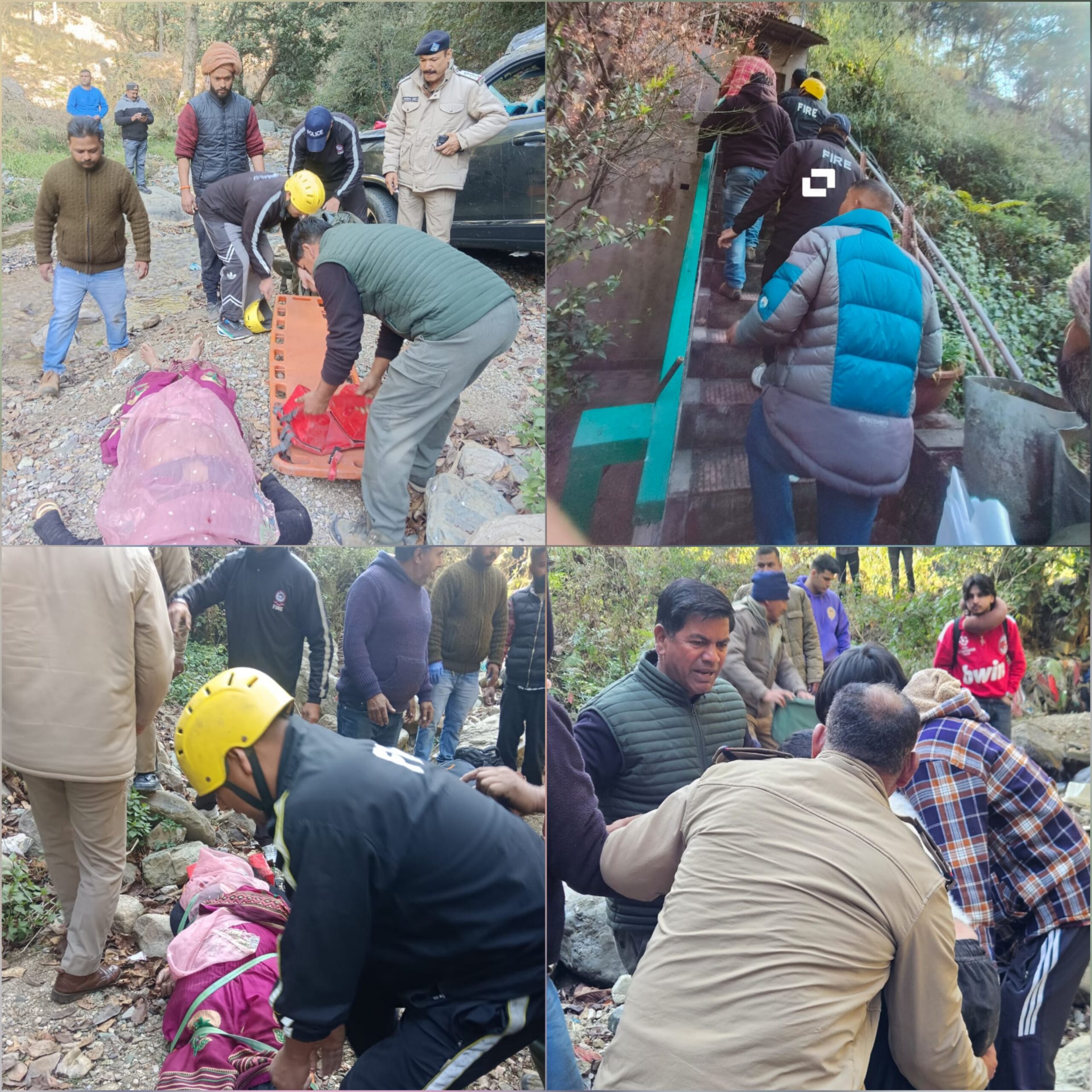 भवाली केची धाम के पास कार up संख्या 25 d z 4653 खाई में जा गिरी जिसमें नौ लोग सवार थे ।