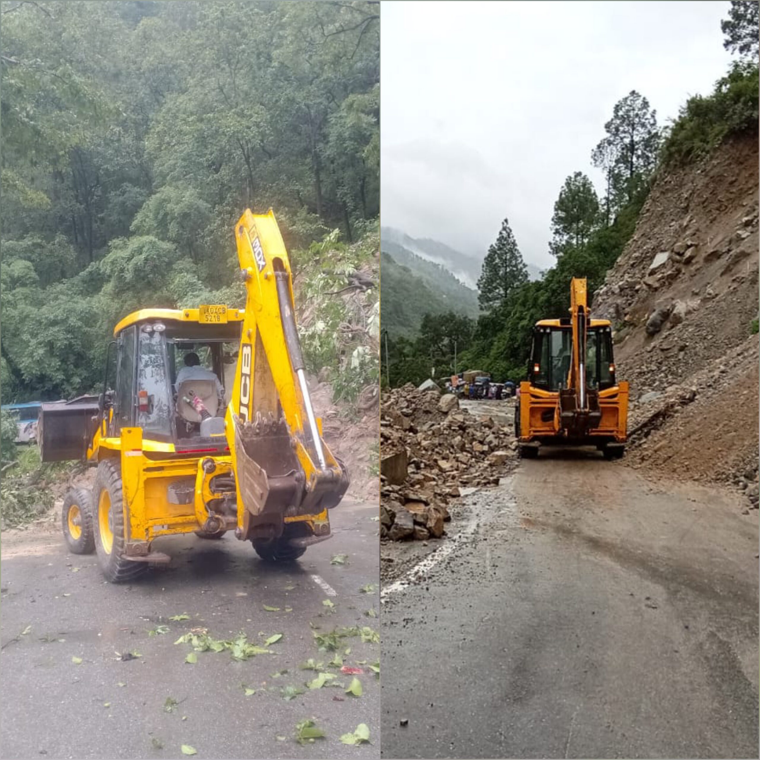 नैनीताल। नैनीताल राष्ट्रीय  राजमार्ग में दोगांव के पास सड़क पर मलबा आ गया है, जिसे जेसीबी की मदद से हटाया जा रहा है।