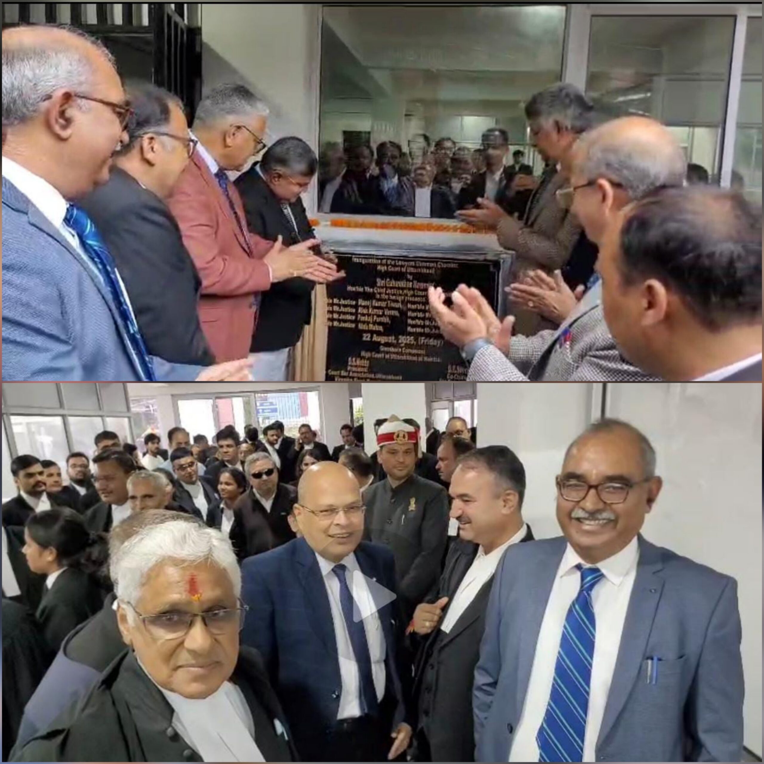 मुख्य न्यायाधीश जी.नरेंद्र अन्य न्यायाधीशों जिसमें वरिष्ठ न्यायमूर्ति मंनोज कुमार तिवारी, न्यायमूर्ति रविन्द्र मैठाणी, न्यायमूर्ति आलोक वर्मा, न्यायमूर्ति पंकज पुरोहित, न्यायमूर्ति आशीष नैथानी, न्यायमूर्ति आलोक मेहरा और न्यायमूर्ति सुभाष उपाध्याय के साथ हाईकोर्ट से लगे न्यू चैम्बर ब्लॉक में पहुंचे। उन्होंने, अन्य न्यायाधीशों के साथ जूनियर कॉमन चैम्बर, लाइब्रेरी अपग्रेड, एडवोकेट क्लर्क रूम का उद्घाटन किया। न्यायाधीशों ने सभी नवनिर्मित कमरों का निरीक्षण किया।