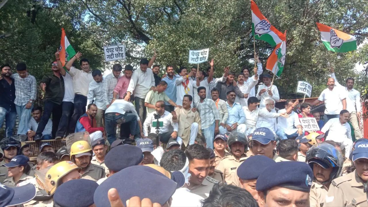 पेपरलीक मामले में मुख्यमंत्री आवास की कूच करते कांग्रेस प्रदेश अध्यक्ष सहित कई कार्यकर्ता गिरफ्तार