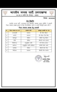 उत्तराखंड में भाजपा ने जारी की 8 जिला पंचायत अध्यक्ष प्रत्याशियों की लिस्ट नैनीताल जिले से दीपा दरमवाल को बनाया प्रत्याशी