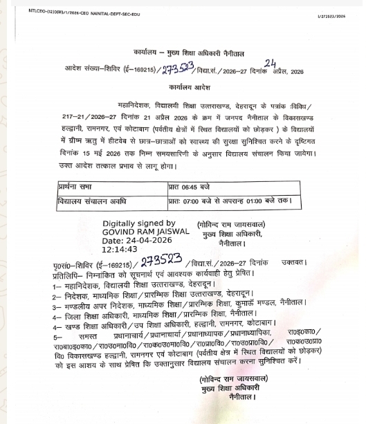 यह आदेश विशेष रूप से हल्द्वानी, रामनगर और कोटाबाग ब्लॉक के शहरी क्षेत्रों के स्कूलों पर तत्काल प्रभाव से लागू किया गया है।