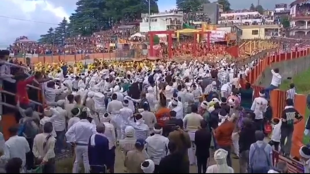 9 मिनट चले इस अनूठे युद्ध में पत्थरों के स्थान पर फल और फूलों का प्रयोग कर परंपरा को जीवंत रखा गया।