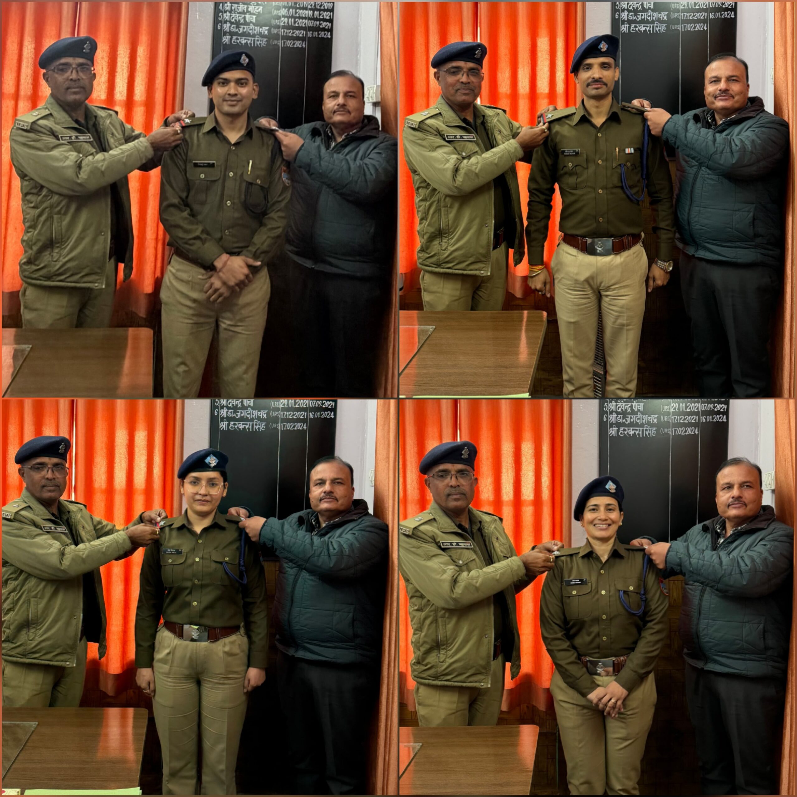 एसपी कार्यालय ने पीपिंग सेरेमनी का आयोजन कर मिनिस्ट्रियल संवर्ग के 4 कार्मिकों(लिपिक) को सहायक उपनिरीक्षक पद पर पदोन्नत होने पर कंधों में स्टार लगाकर किया अलंकृत