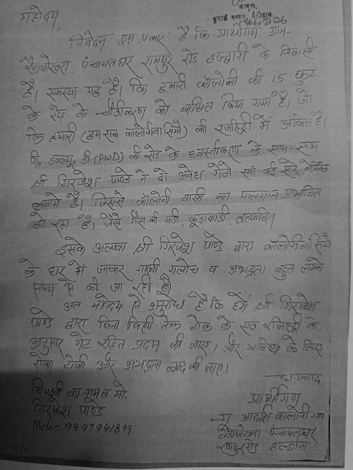 जानकारी के अनुसार, रामपुर रोड के बैलपोखरा क्षेत्र स्थित न्यू आदर्श कॉलोनी के निवासियों ने शिकायत की थी कि कॉलोनी के 15 फीट चौड़े पारंपरिक सार्वजनिक मार्ग पर स्कूल निर्माण के दौरान गेट लगाकर रास्ता बाधित कर दिया गया है। इस मामले को जनता मिलन कार्यक्रम में कुमाऊं आयुक्त एवं मुख्यमंत्री सचिव आईएएस दीपक रावत के समक्ष उठाया गया था।