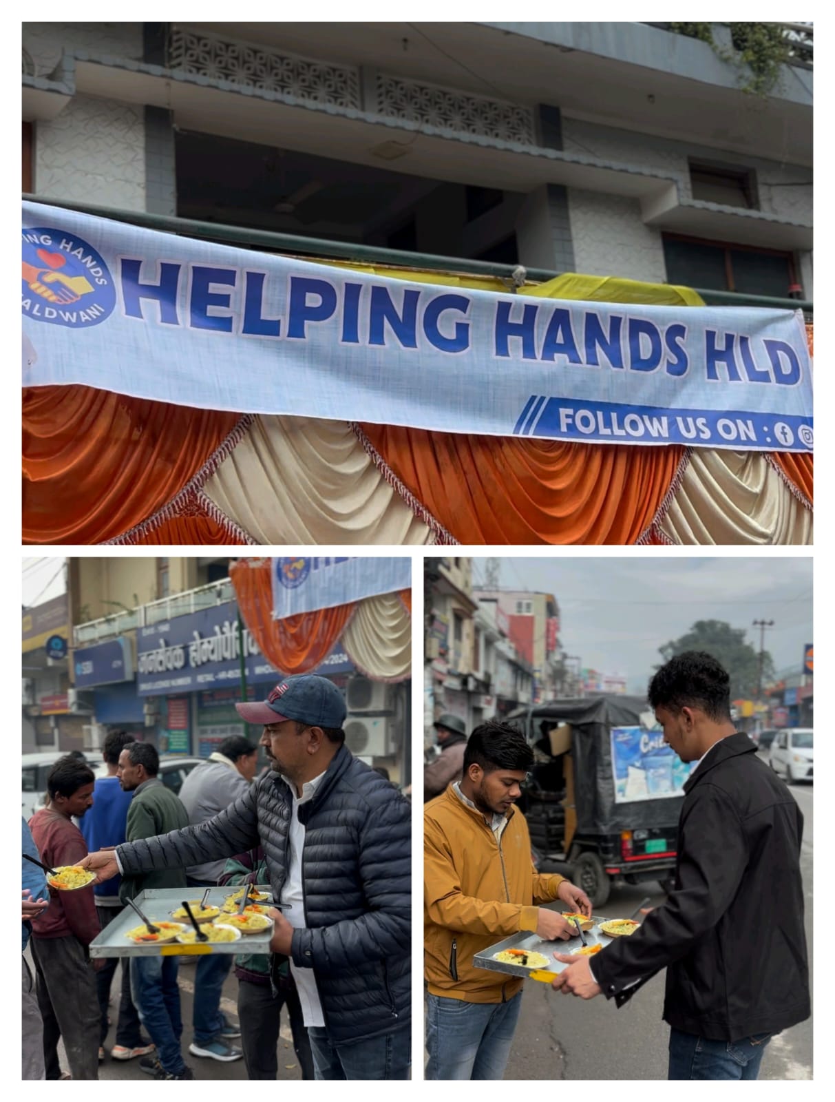हल्द्वानी। बरेली रोड स्थित क्षेत्र में माघ माह की पूर्णिमा के पावन अवसर पर हेल्पिंग हैंड ग्रुप के साथियों द्वारा खिचड़ी वितरण कार्यक्रम का आयोजन किया गया। इस दौरान राहगीरों और स्थानीय लोगों को खिचड़ी प्रसाद वितरित कर पुण्य लाभ अर्जित किया गया।