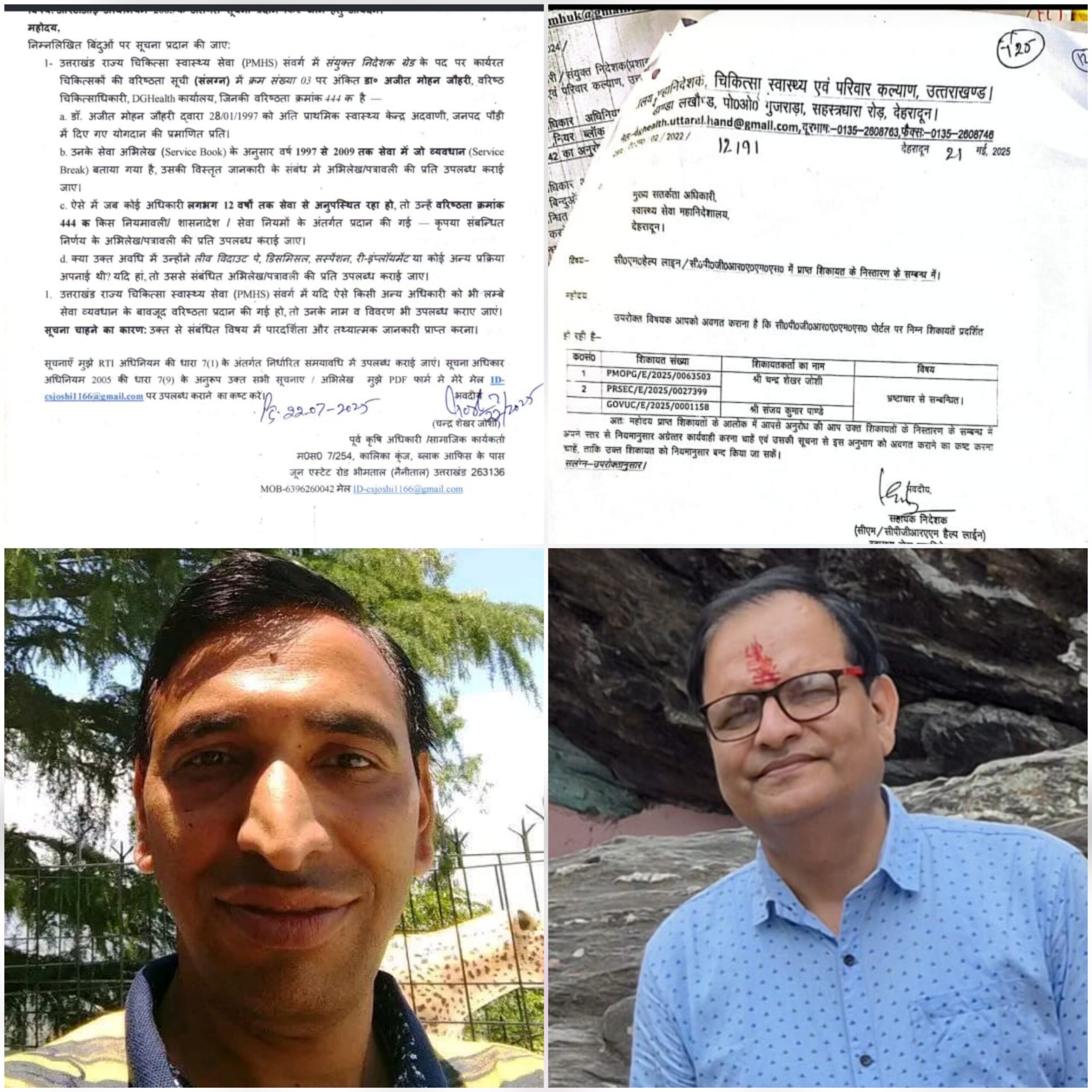 इसके पीछे वर्षों से जारी एक निडर और ईमानदार लड़ाई है — जिसे सामाजिक कार्यकर्ता संजय कुमार पाण्डे और आर.टी.आई. कार्यकर्ता चंद्र शेखर जोशी ने अंजाम तक पहुंचाया।हाल ही में जारी एक आधिकारिक पत्र में स्वास्थ्य महानिदेशालय स्तर पर भ्रष्टाचार से जुड़ी जिन शिकायतों को गंभीरता से लिया गया है।