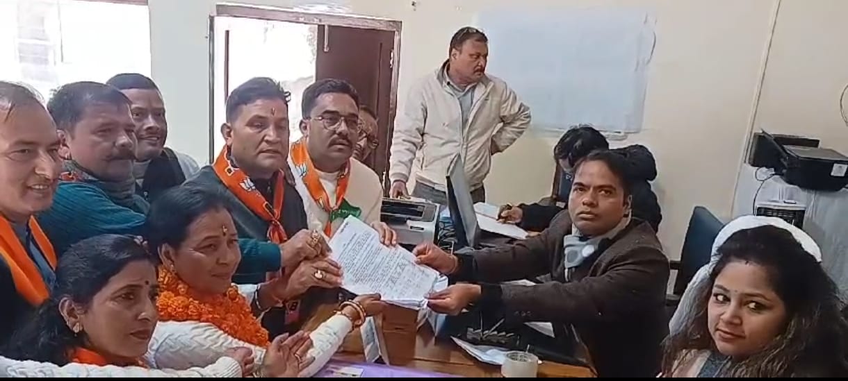 भीमताल में भाजपा प्रत्याशी कमला आर्या पालिका अध्यक्ष के लिए नामांकन किया और कांग्रेस से सीमा टम्टा पालिका अध्यक्ष के लिए नामांकन किया