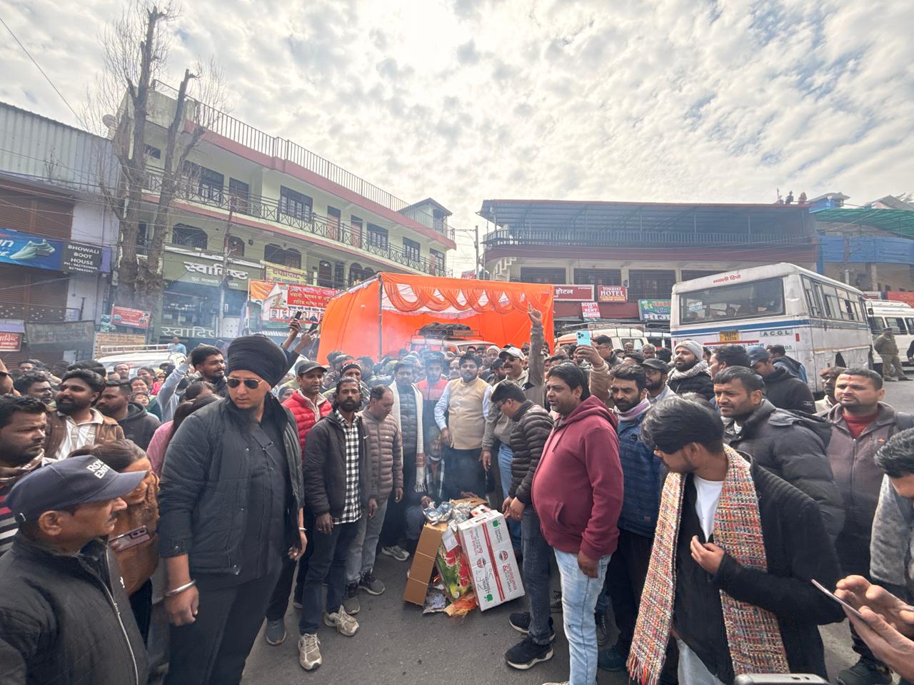 नैनीताल के भवाली में नगर पालिका के नजूल भूमि आदेश के खिलाफ उग्र प्रदर्शन भाजपा नेताओं के खिलाफ जुलूस निकालकर चौराहे पर पुतला दहन किया