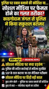 हल्द्वानी। सोशल मीडिया पर लाइव आकर आत्महत्या की धमकी देने वाली महिला ज्योति अधिकारी को पुलिस ने काठगोदाम क्षेत्र के जंगल से सकुशल बरामद कर लिया है। सूचना मिलते ही पुलिस ने तत्काल कार्रवाई करते हुए खोजबीन शुरू की और कुछ ही देर में महिला को सुरक्षित ढूंढ लिया।