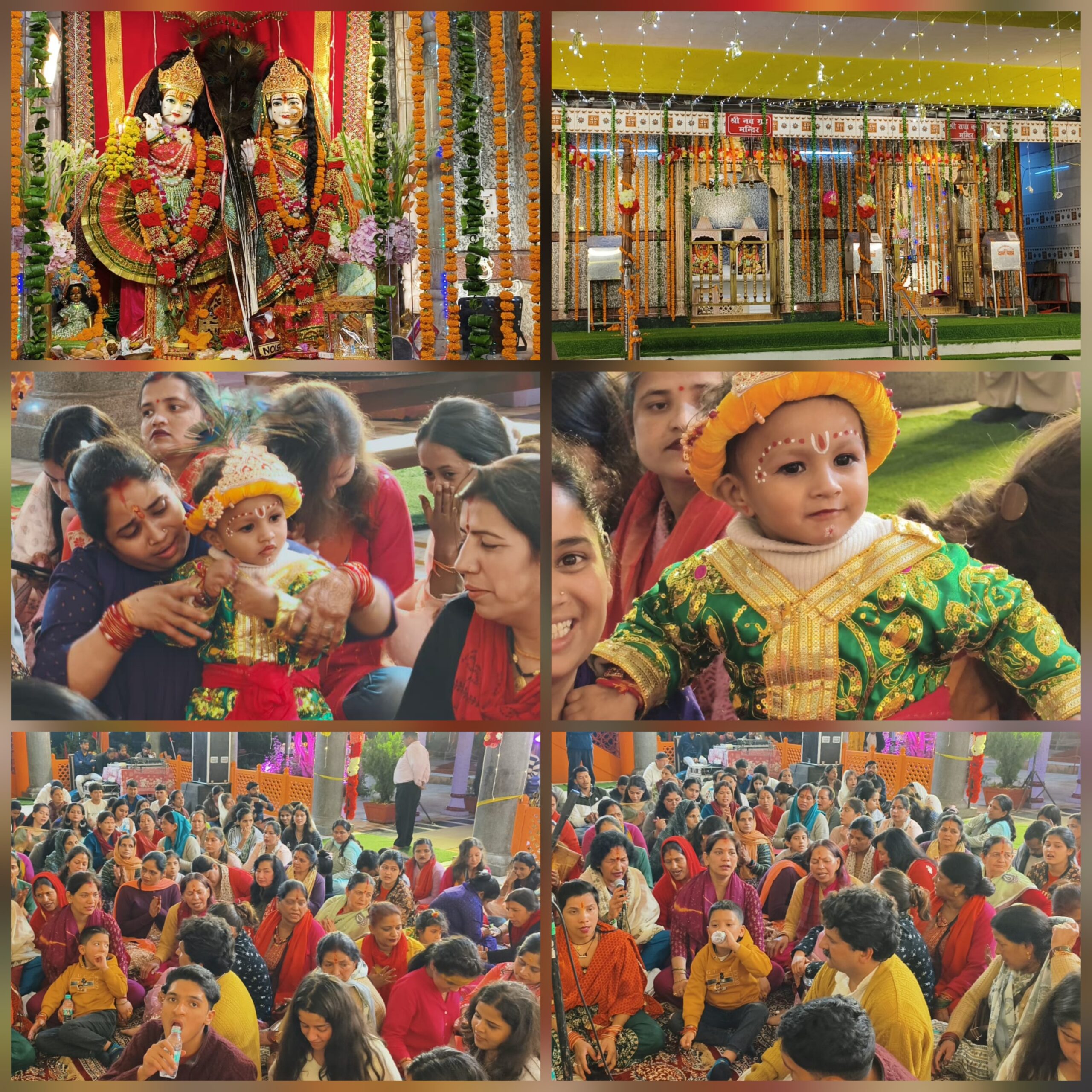 स्थानीय महिलाओं के द्वारा भजन कीर्त का आयोजन किया गया इसके साथ ही छोटे-छोटे बच्चे भी राधा कृष्ण बनाकर मंदिर में पहुंचे थे।