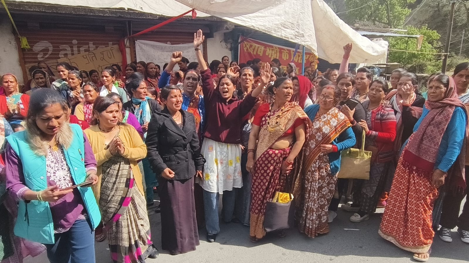 नैनीताल के मंगोली औऱ बजून में शराब की दुकान को लेकर धरना प्रदर्शन कर रहे हैं मातृशक्तियो के आगे प्रशासन को झुकाना पड़ा,अब हीं खुलेगी क्षेत्र में शराब की दुकान