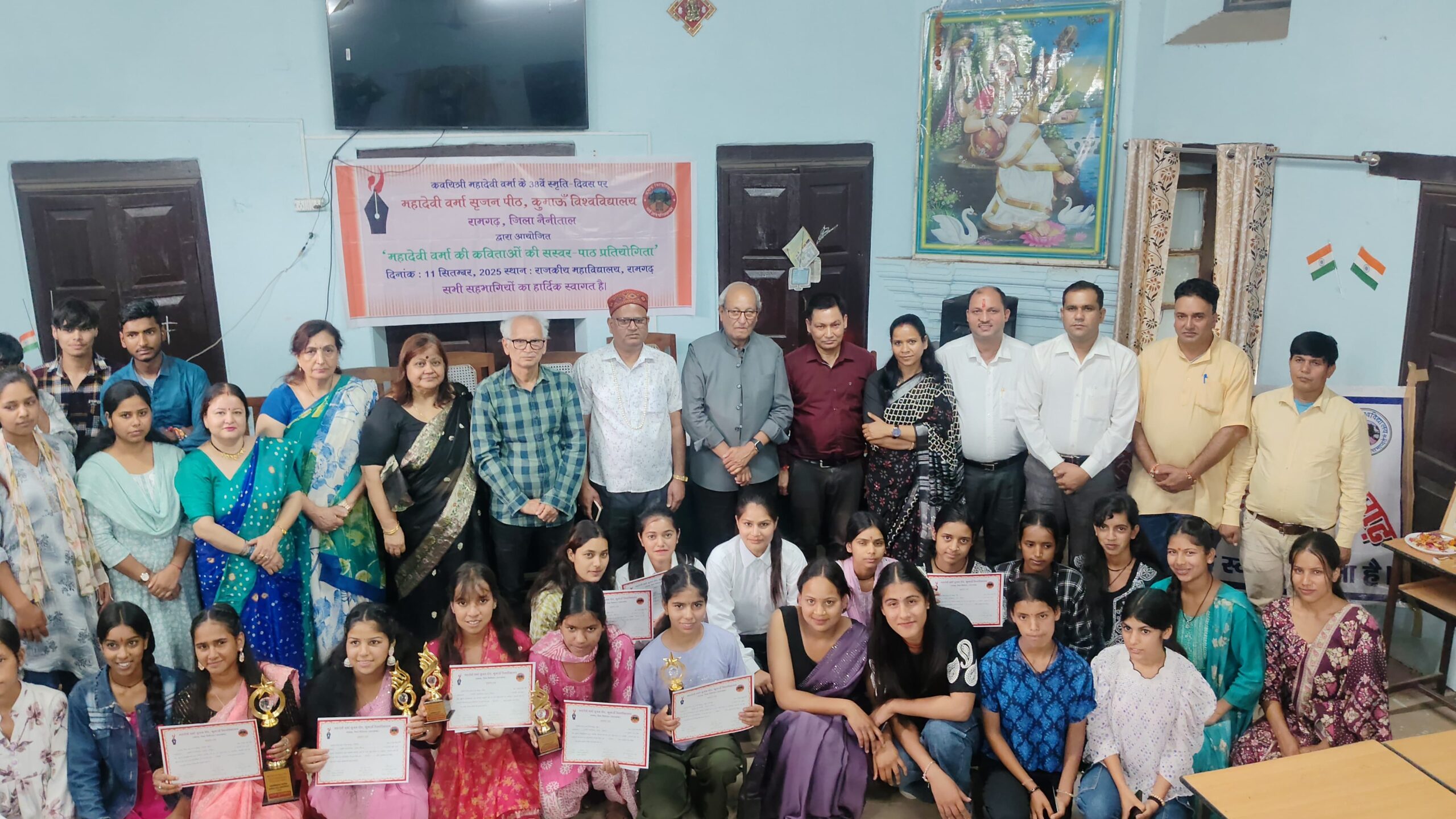 महादेवी वर्मा की कविताओं की सस्वर-पाठ प्रतियोगिता में राजकीय महाविद्यालय, रामगढ़ की 11 छात्राओं ने प्रतिभाग किया।