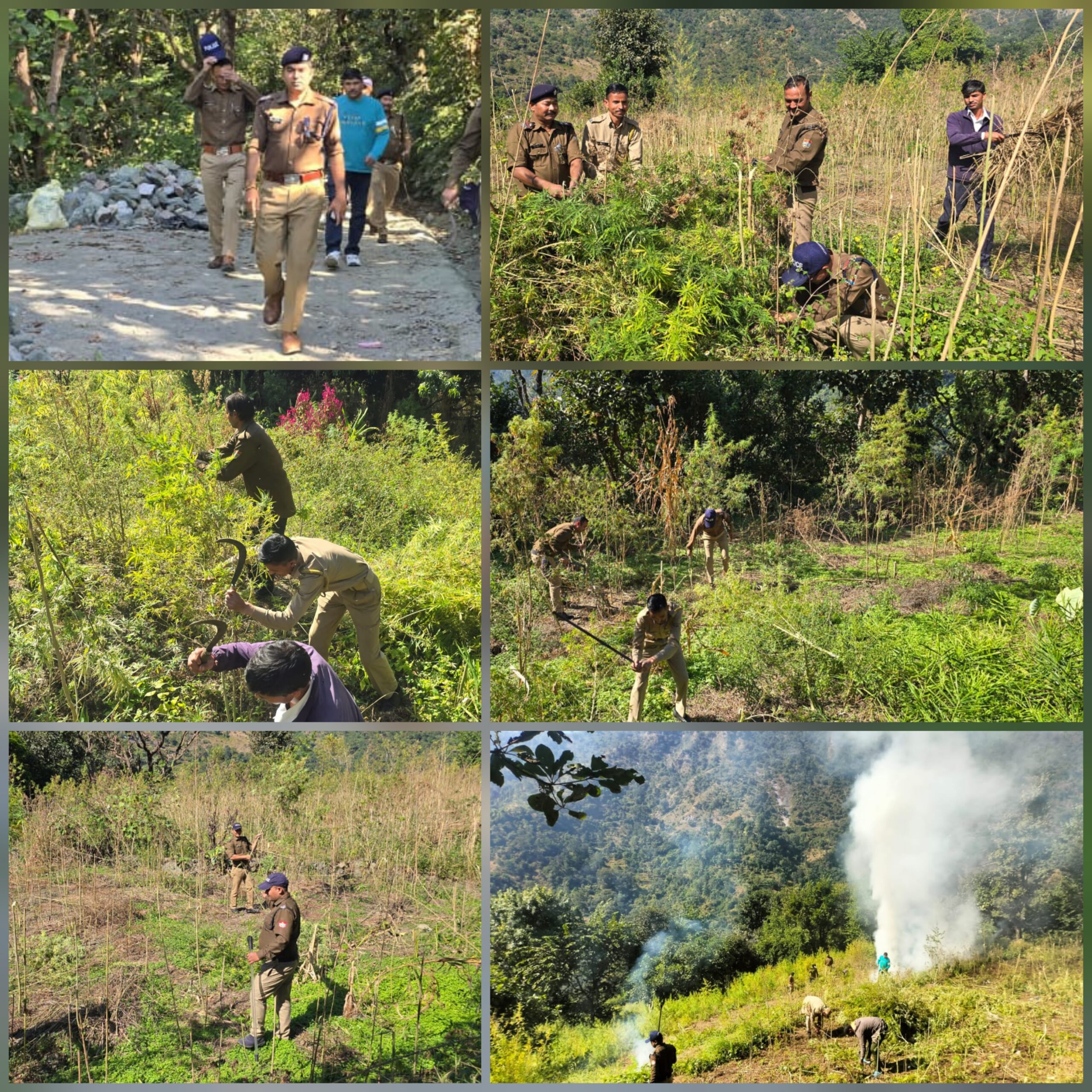 डॉ जगदीश चन्द्र, एमपी क्राइम/ट्रैफिक नैनीताल तथा अमित कुमार सीओ भवाली के पर्यवक्षण में प्रभारी एएनटीएक निरीक्षक विजय मेहता एवं संजीत कुमार राठौड़ थानाध्यक्ष भीमताल के नेतृत्व में एंटी ड्रग टास्क फोर्स और थाना भीमताल पुलिस की संयुक्त टीम द्वारा कार्यवाही के दौरान भीमताल क्षेत्र के ग्राम खलड़ी, गाधे, बेरीजाला, खैरोलापत तथा खैरोला पाण्डे में लगभग 25 नाली में उगाई गयी अवैध भांग की खेती को काटकर इकट्ठा कर पेट्रोल से आग लगाकर विनिष्टीकरण की कार्यवाही की गयी तथा आसपास के समस्त ग्राम प्रधानों और ग्राम वासियों को इन गतिविधियों को न करने की हिदायत दी गई।