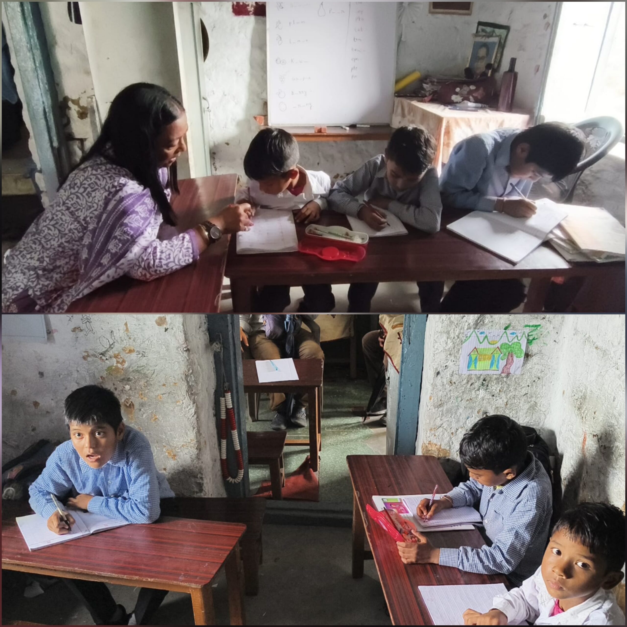 इस स्कूल में पढ़ने के लिए आए बच्चों की जगह कम होने से उन्हें पढ़ने में परेशानी हो रही है।