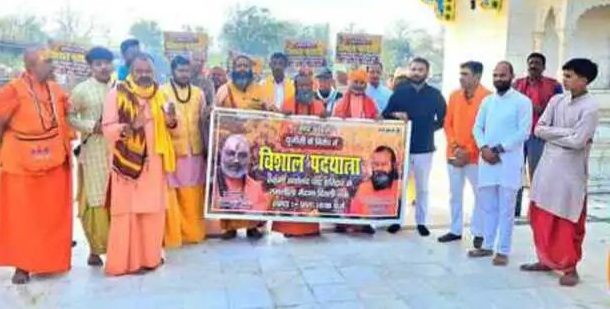 यूजीसी के नए नियमों के विरोध में जूना अखाड़े के महामंडलेश्वर स्वामी यति नरसिम्हानंद गिरी के शिष्यों ने रविवार को हरिद्वार स्थित सर्वानंद घाट से पदयात्रा की शुरुआत की।