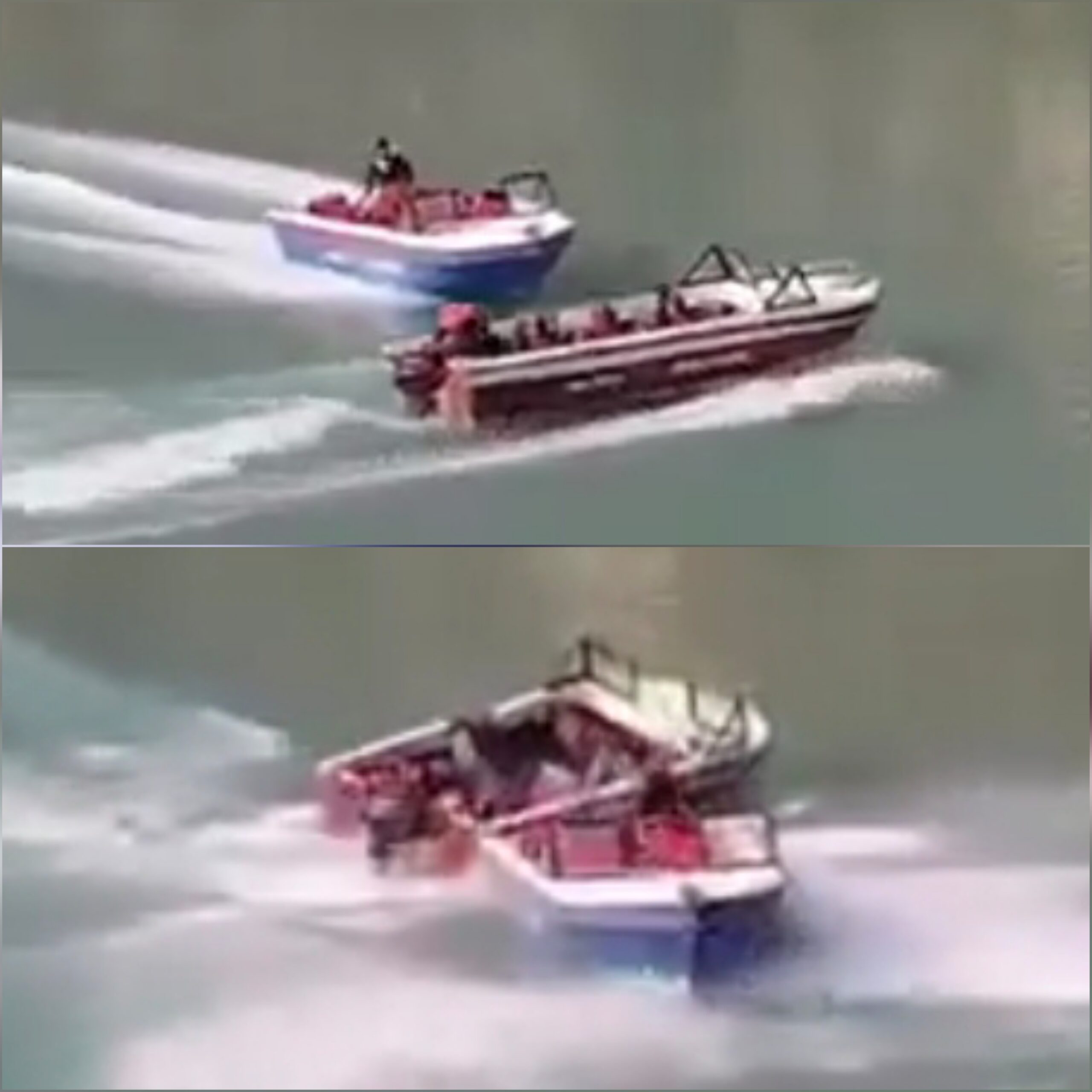 उत्तराखंड के पौड़ी गढ़वाल जनपद के श्रीनगर स्थित प्रसिद्ध धारी देवी मंदिर के पास नदी में दो मोटर बोट की टक्कर का वीडियो सोशल मीडिया पर तेजी से वायरल हो रहा है। गनीमत रही कि इस घटना में कोई जनहानि नहीं हुई और दोनों बोट ऑपरेटर सुरक्षित बताए जा रहे हैं।