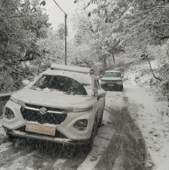 गैरसैंण। क्षेत्र में साल की पहली बर्फबारी हुई, जिसका स्थानीय लोगों और पर्यटकों ने जमकर लुत्फ उठाया। चारों ओर बर्फ की सफेद चादर बिछने से नजारा बेहद मनमोहक हो गया। हालांकि, इस बर्फबारी ने एक शादी की खुशियों के बीच बरातियों की मुश्किलें भी बढ़ा दीं।