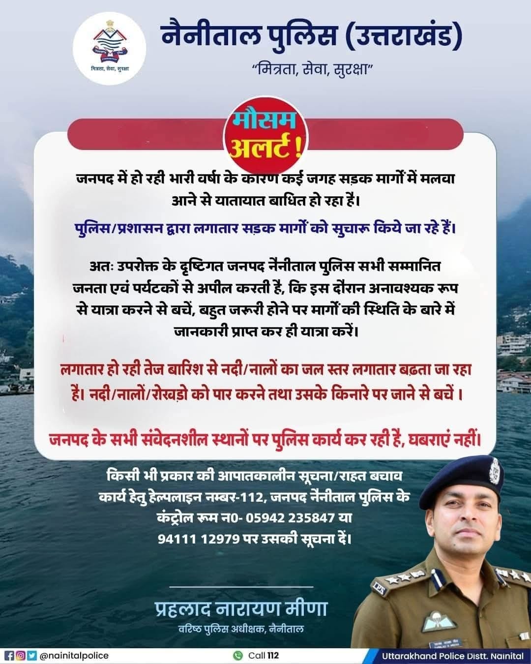 भारी बारिश में सुरक्षित रहें , SSP NAINITAL की जनअपील