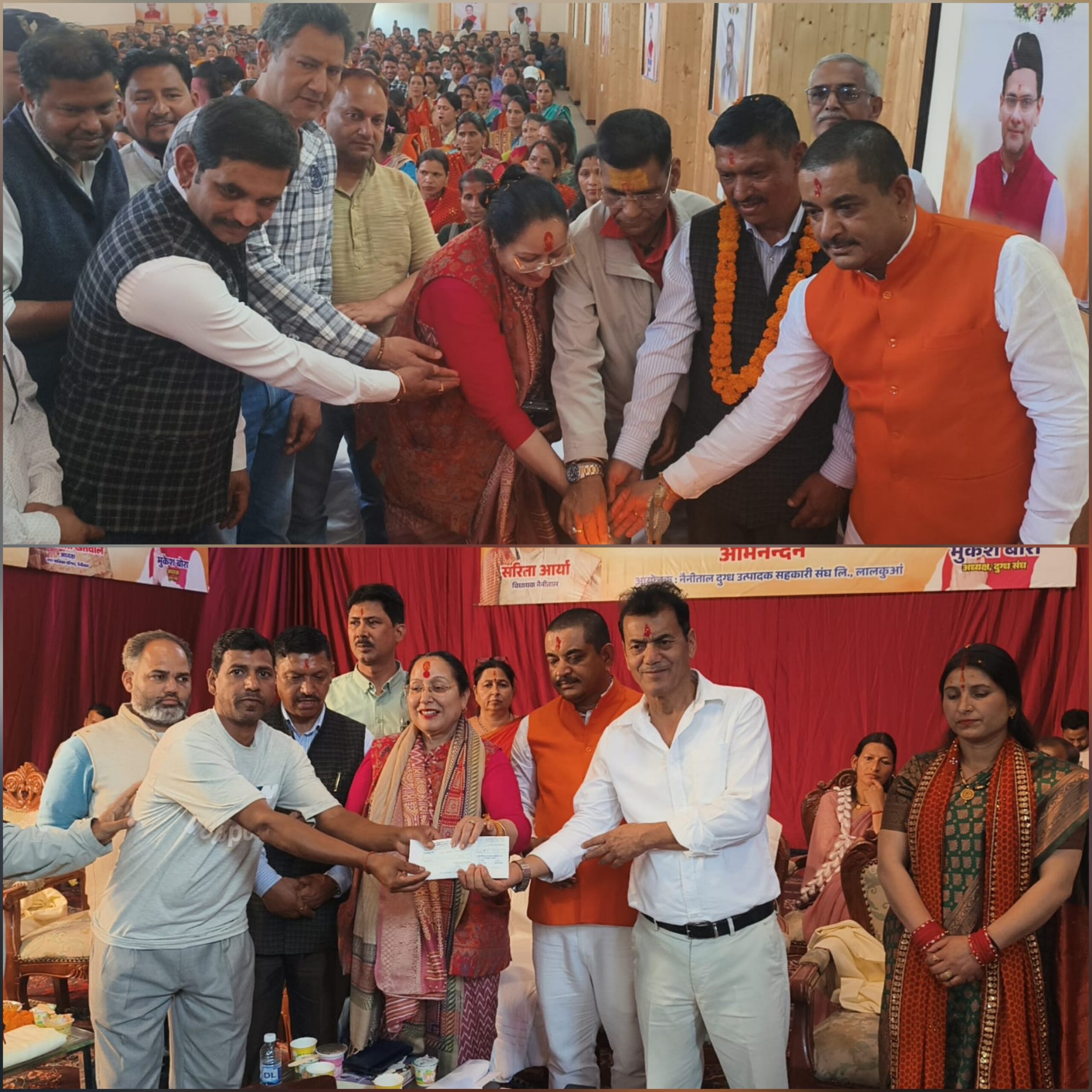 कार्यक्रम का आयोजन दुग्ध संघ अध्यक्ष मुकेश बोरा की अध्यक्षता में नैनीताल क्लब में भव्य रूप से संपन्न हुआ। कार्यक्रम का शुभारंभ मुख्य अतिथि विधायक सरिता आर्या, भीमताल ब्लॉक प्रमुख हरीश बिष्ट, भाजपा मंडल अध्यक्ष नितिन कार्की, मंडी परिषद सलाहकार मनोज जोशी, सांसद प्रतिनिधि गोपाल रावत एवं अध्यक्ष मुकेश बोरा द्वारा संयुक्त रूप से दीप प्रज्ज्वलित कर किया गया।