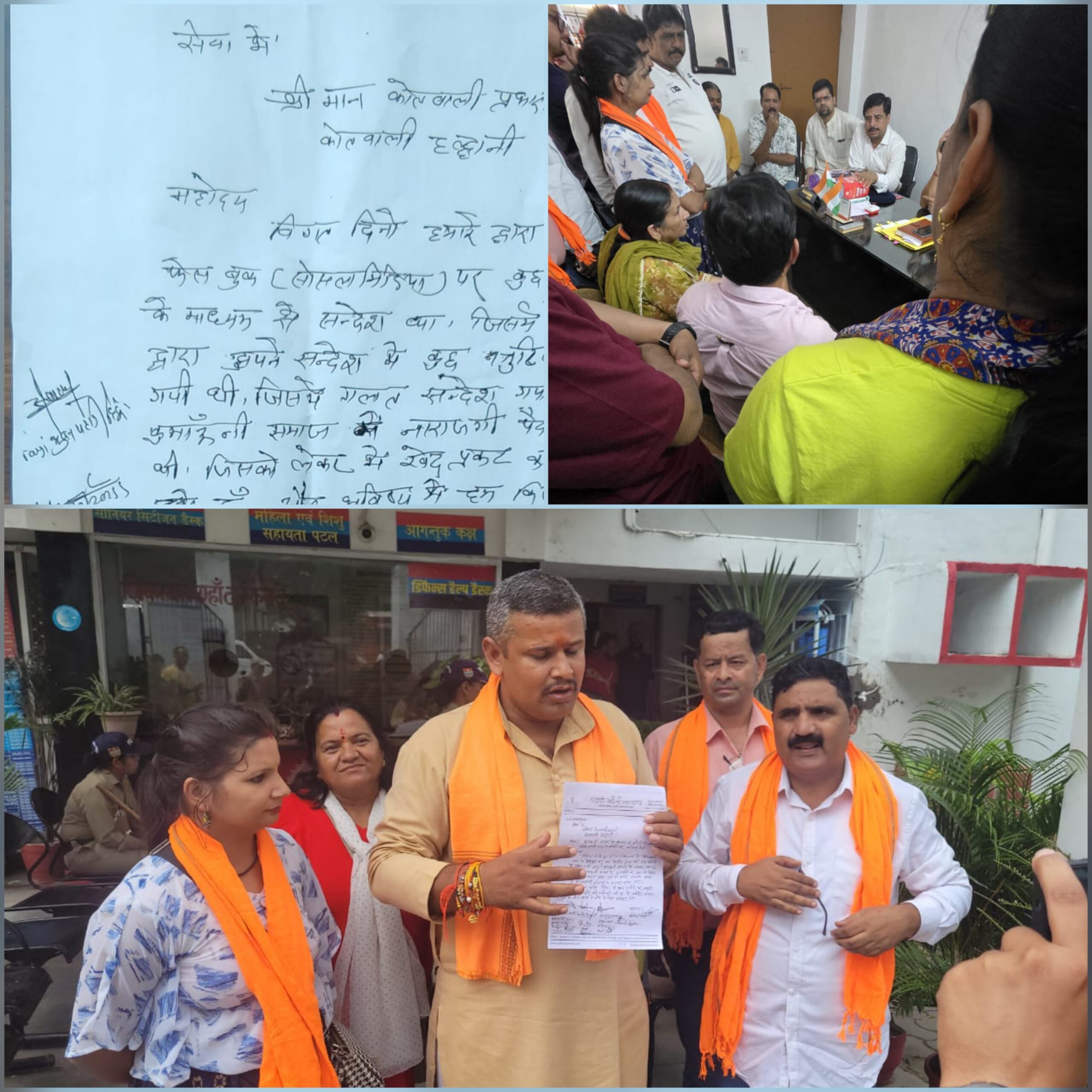 हल्द्वानी। पहाड़ी आर्मी के नगर अध्यक्ष फौजी भुवन पांडे जी के नेतृत्व में आज हल्द्वानी कोतवाली का घेराव किया गया तब पुलिस विवेक शर्मा को कोतवाली लेकर आई कोतवाली में आकर सार्वजनिक रूप से कुमाऊनी समाज से माफी मांगी और अपने शब्दों के लिए खेत प्रकट किया और खुद पत्र लिखकर माफी नामा दिया।
